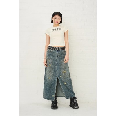 Skin Snakeskin Print Denim Maxi Skirt